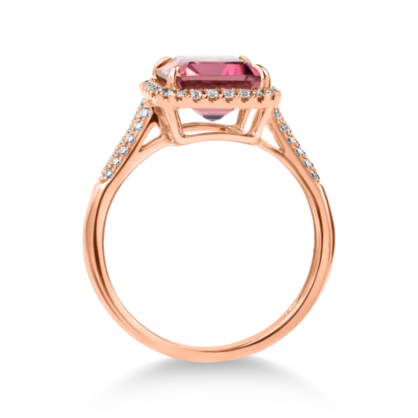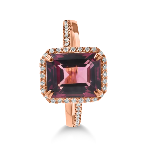Inel geometric din aur roz cu turmalina roz octogonala de 3.1ct si diamante de 0.2ct
