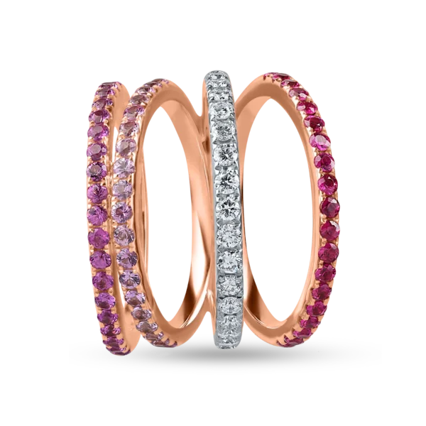 Inel geometric din aur roz cu pietre pretioase si semipretioase de 2.8ct