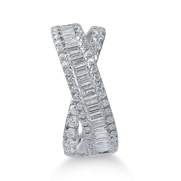 Inel impletit din aur alb cu diamante baguette si rotunde de 1.2ct