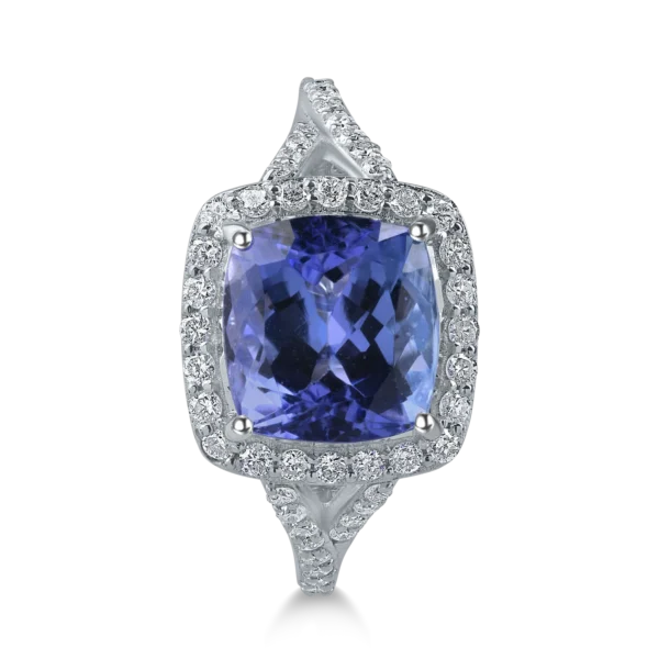 Inel patrat din aur alb cu tanzanit radiant de 3.9ct si diamante de 0.4ct
