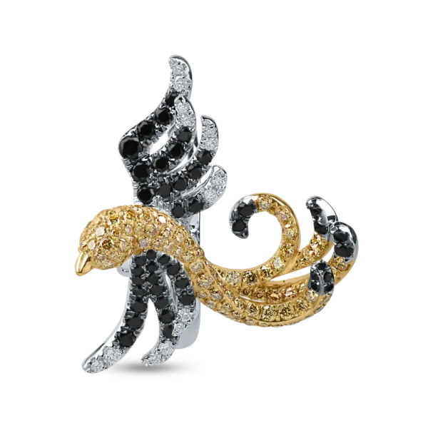 Inel pasare din aur alb-galben cu diamante de 1ct