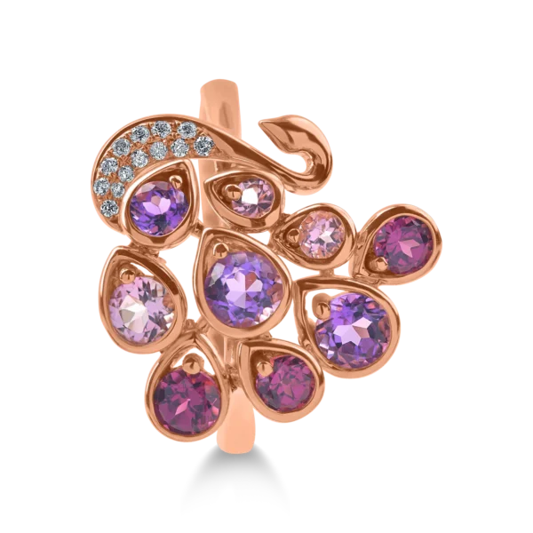 Inel paun din aur roz cu pietre pretioase si semipretioase de 5.78ct
