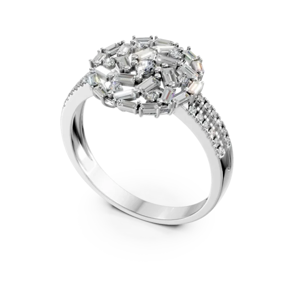 Inel rotund din aur alb cu diamante baguette si rotunde de 0.8ct