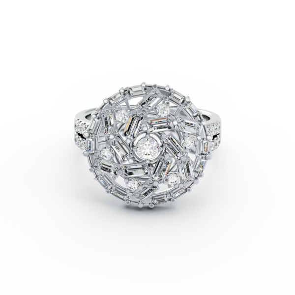 Inel rotund din aur alb cu diamante baguette si rotunde de 0.8ct
