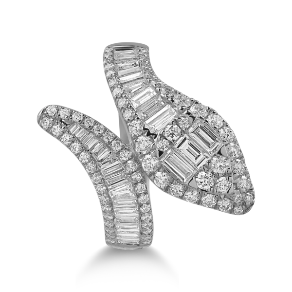 Inel sarpe din aur alb cu diamante baguette si rotunde de 1.4ct