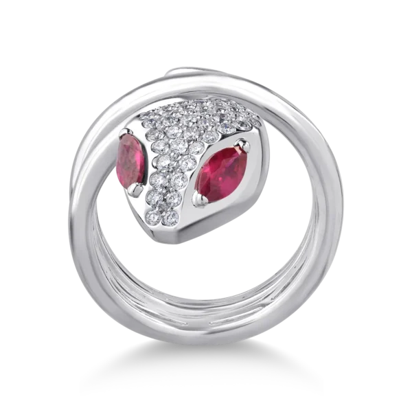 Inel sarpe din aur alb cu rubine marquise de 0.5ct si diamante de 0.5ct