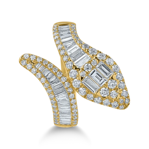 Inel sarpe din aur galben cu diamante baguette si rotunde de 1.4ct