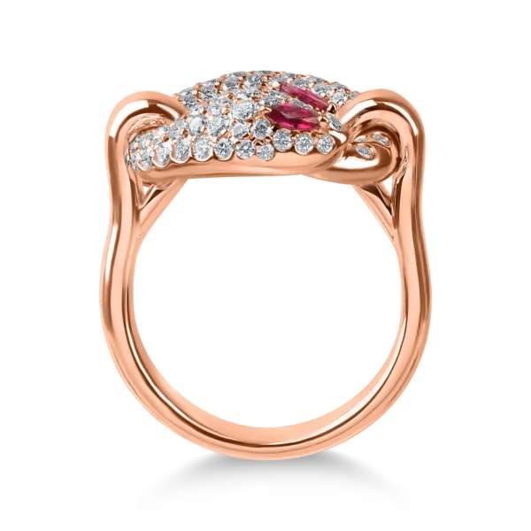 Inel sarpe din aur roz cu rubine marquise de 0.1ct si diamante de 1.3ct