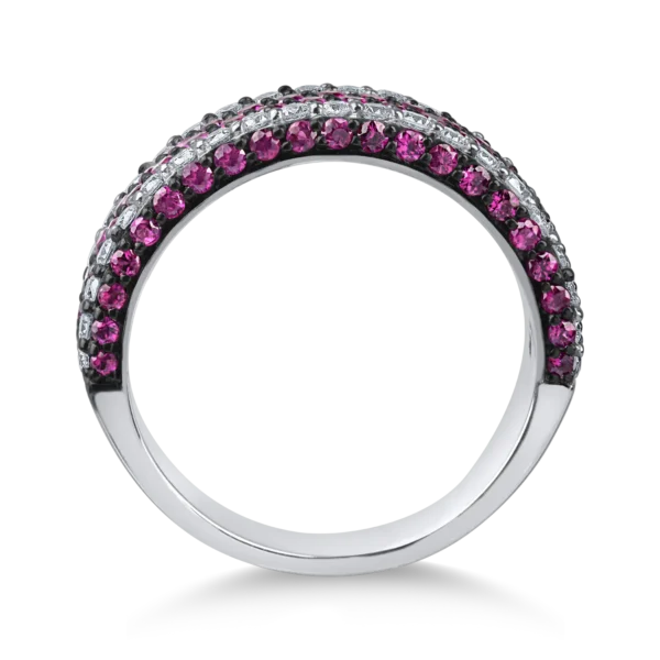 Inel semi eternity din aur alb cu rubine de 1.3ct si diamante de 0.6ct