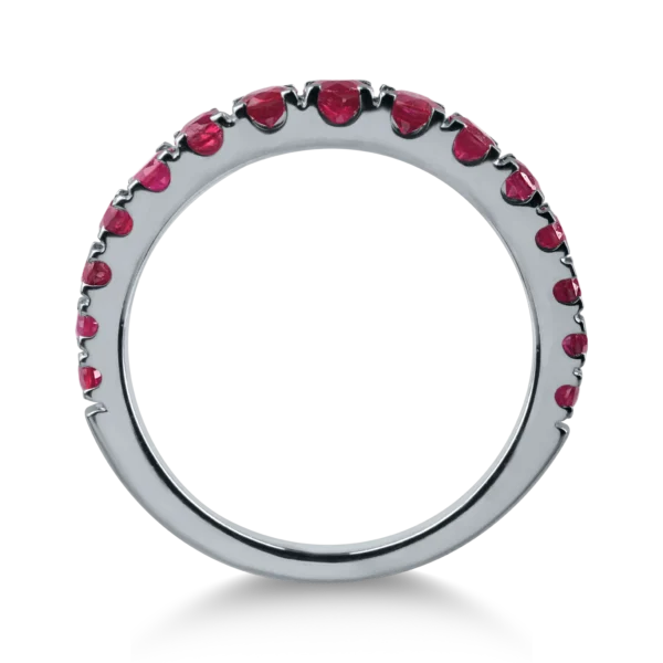 Inel semi eternity din aur alb cu rubine de 2.21ct