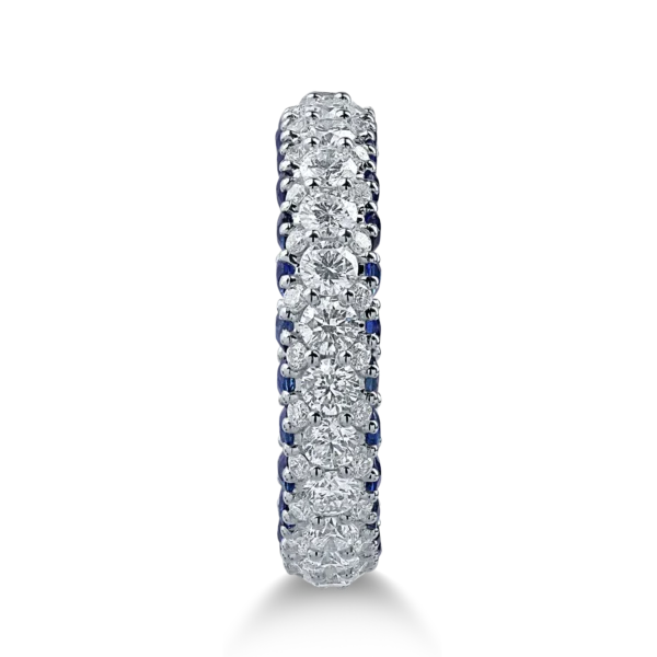 Inel semi eternity din aur alb cu safire albastre de 1.46ct si diamante de 1.17ct