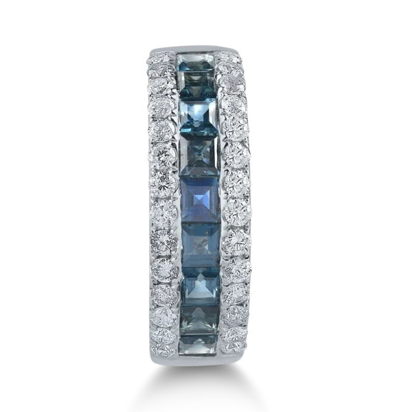 Inel semi eternity din aur alb cu safire princess de 1.79ct si diamante de 0.7ct