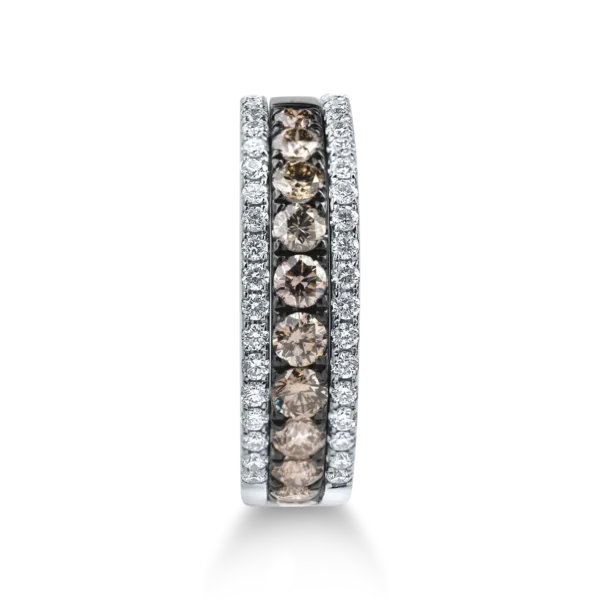 Inel semi-eternity din aur alb cu diamante maro si incolore de 1ct