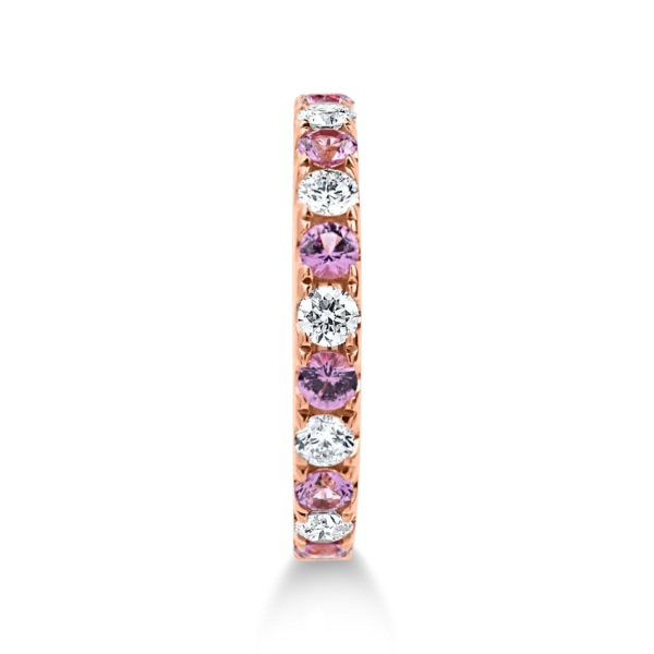 Inel semi-eternity din aur roz cu safire roz si diamante de 0.9ct
