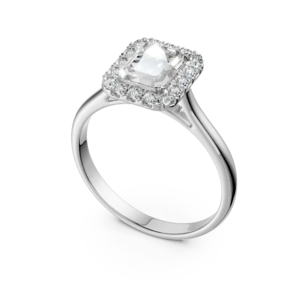 Inel Colette din aur alb cu diamante emerald si rotunde de 1.2ct create in laborator