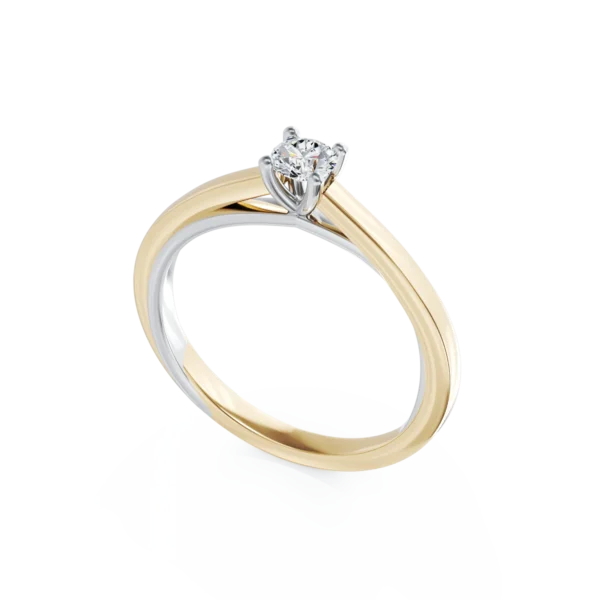 Inel de logodna din aur alb-galben cu diamant solitaire de 0.19ct