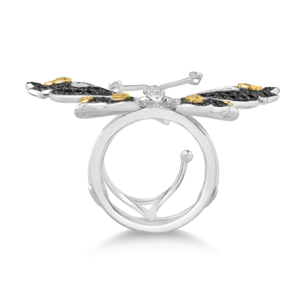 Inel cu fluture si floare din aur alb cu pietre pretioase de 3.53ct