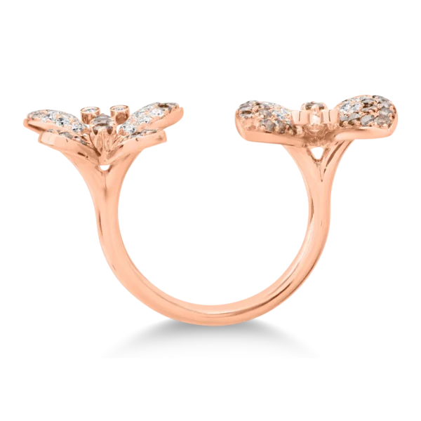Inel cu fluturi din aur roz cu diamante maro de 0.81 si diamante transparente de 0.67ct