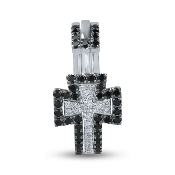 Inel deschis cu cruce din aur alb cu diamante negre de 0.3ct si diamante incolore de 0.1ct