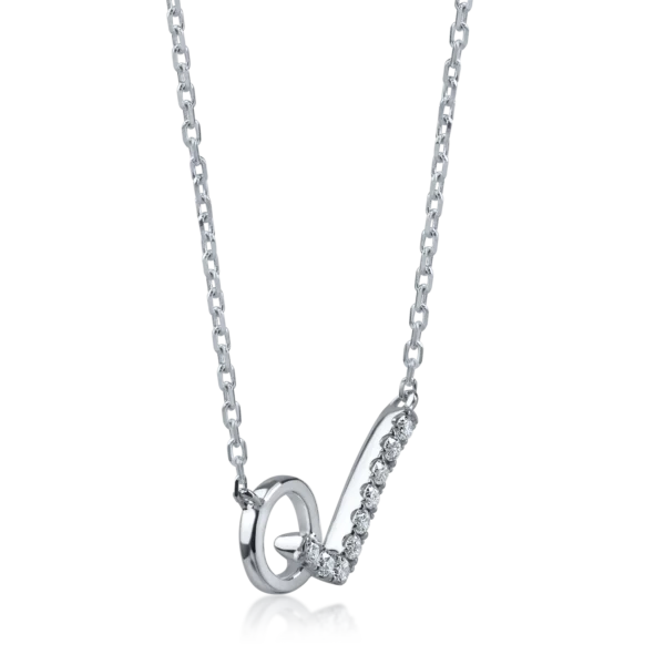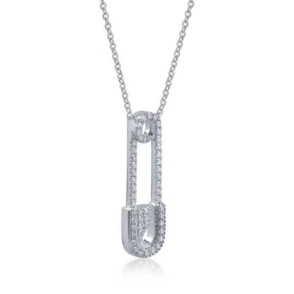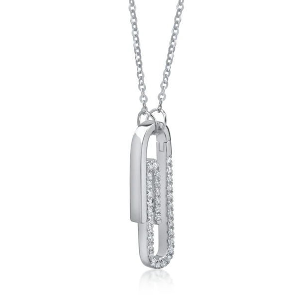 Lant cu pandantiv agrafa din aur alb cu diamante de 0.1ct