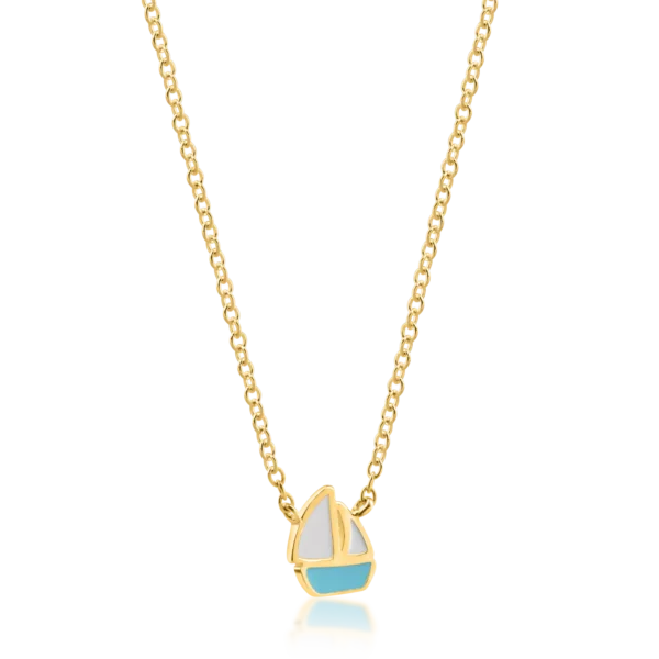 Lant cu pandantiv barca din aur galben cu insertii albe si turcoaz