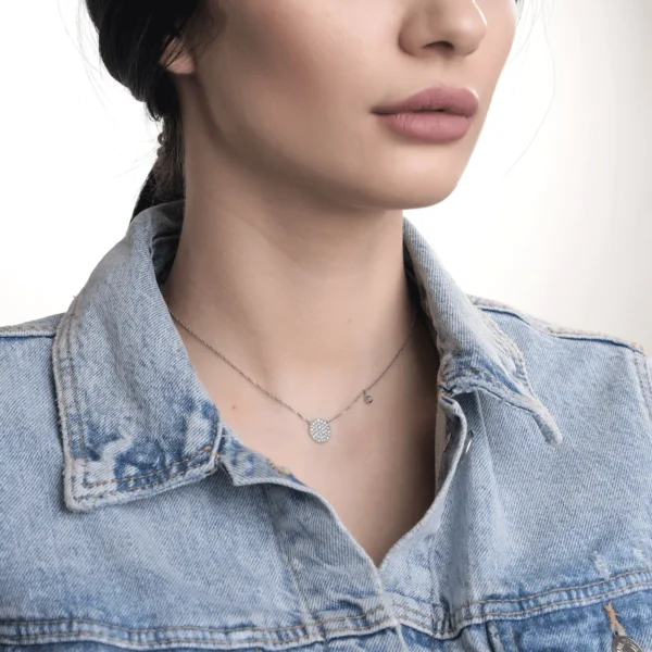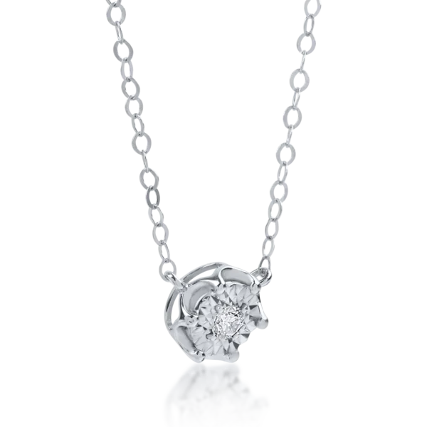 Lant cu pandantiv din aur alb cu diamant de 0.03ct