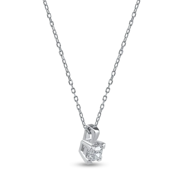 Lant cu pandantiv din aur alb cu diamant princess solitaire de 0.1ct