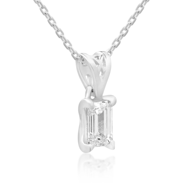Lant cu pandantiv din aur alb cu diamant emerald solitaire de 1ct creat in laborator