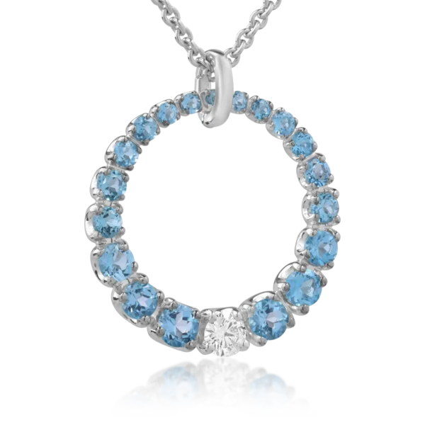 Lant cu pandantiv din aur alb cu diamant de 0.59ct si topaze albastre de 4.92ct