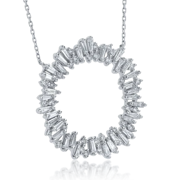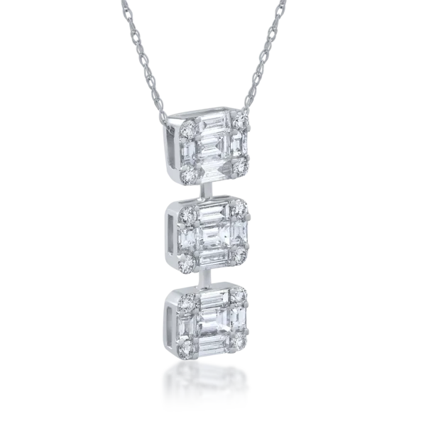 Lant cu pandantiv din aur alb cu diamante baguette de 1.16ct