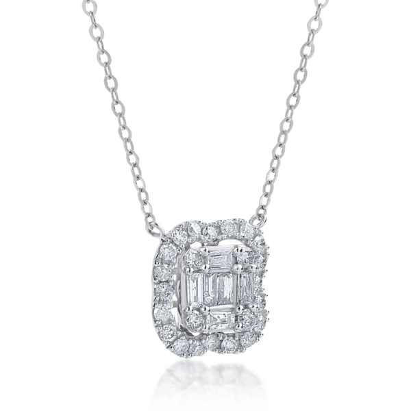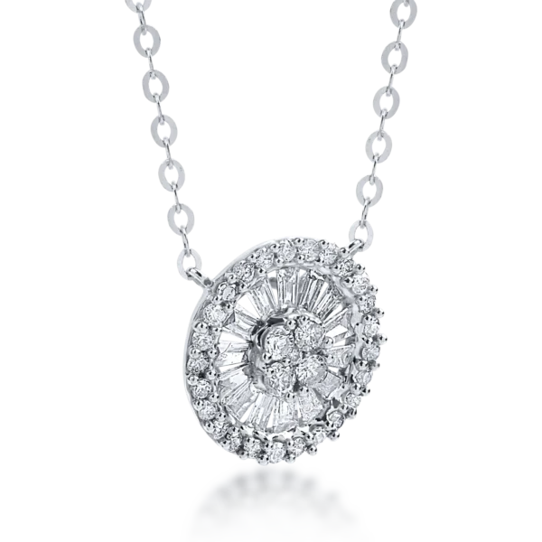 Lant cu pandantiv din aur alb cu diamante baguette si rotunde de 0.46ct