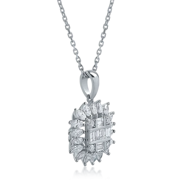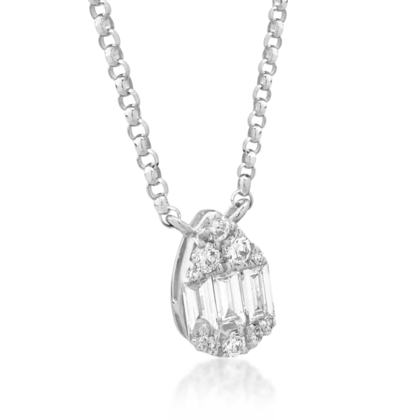 Lant cu pandantiv din aur alb cu diamante baguette si rotunde de 0.18ct