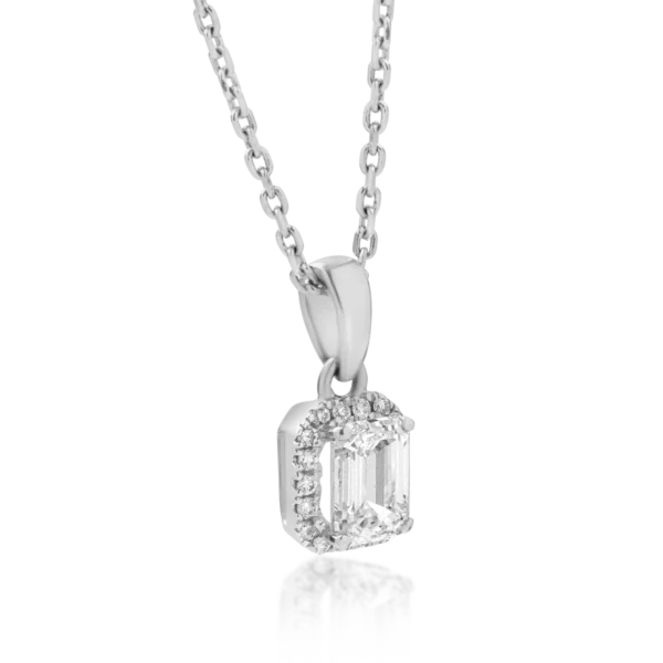 Lant cu pandantiv din aur alb cu diamante baguette de 0.42ct