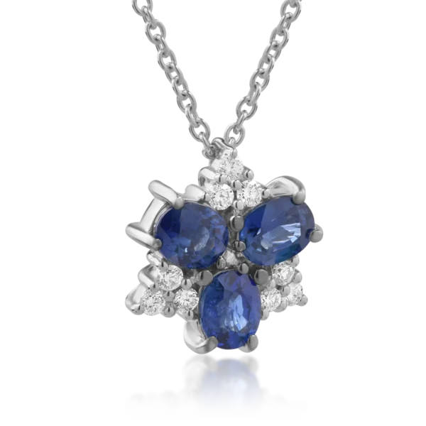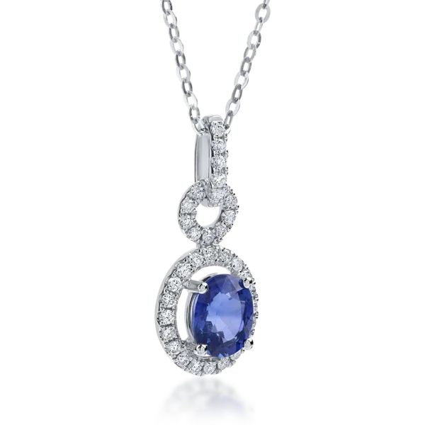 Lant cu pandantiv din aur alb cu safire ovale de 1.65ct si diamante de 0.17ct