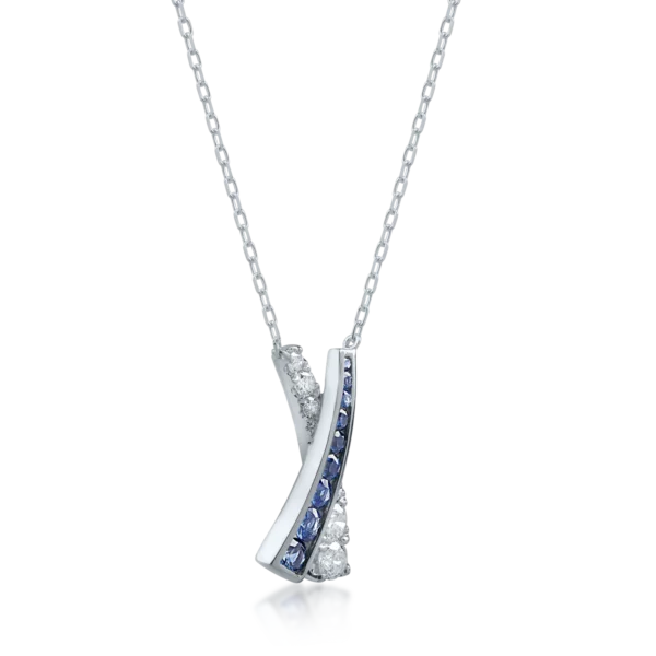 Lant cu pandantiv din aur alb cu safire de 0.43ct si diamante de 0.36ct
