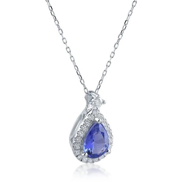 Lant cu pandantiv din aur alb cu tanzanit pear de 0.98ct si diamante de 0.18ct