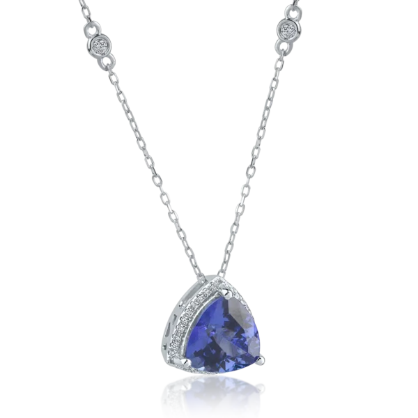 Lant cu pandantiv din aur alb cu tanzanit trillion de 3.26ct si diamante de 0.17ct