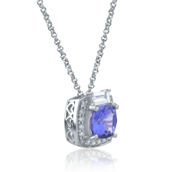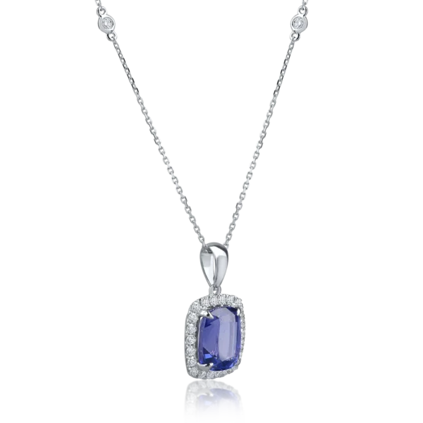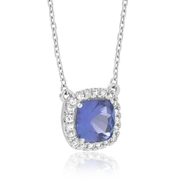 Lant cu pandantiv din aur alb cu tanzanit cushion de 0.936ct si diamante de 0.178ct