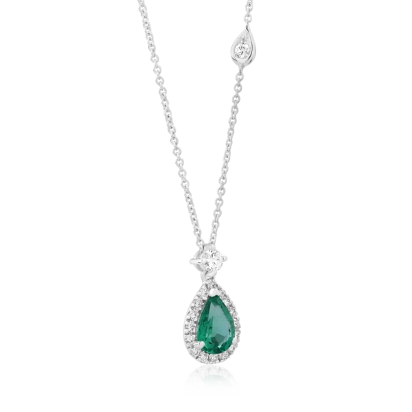 Lant cu pandantiv din aur alb cu smarald pear de 0.37ct si diamante de 0.14ct