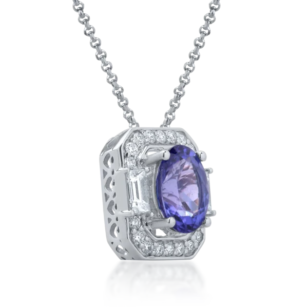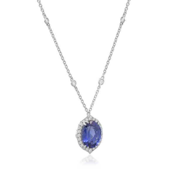 Lant cu pandantiv din aur alb cu tanzanit oval de 6.04ct si diamante de 0.58ct