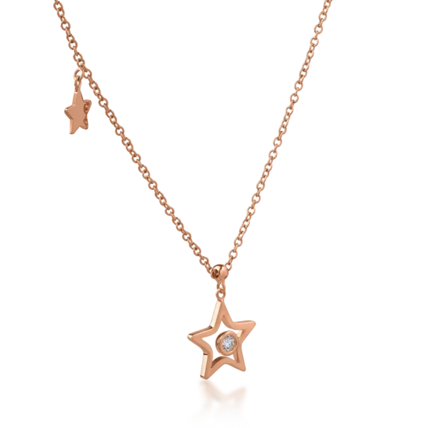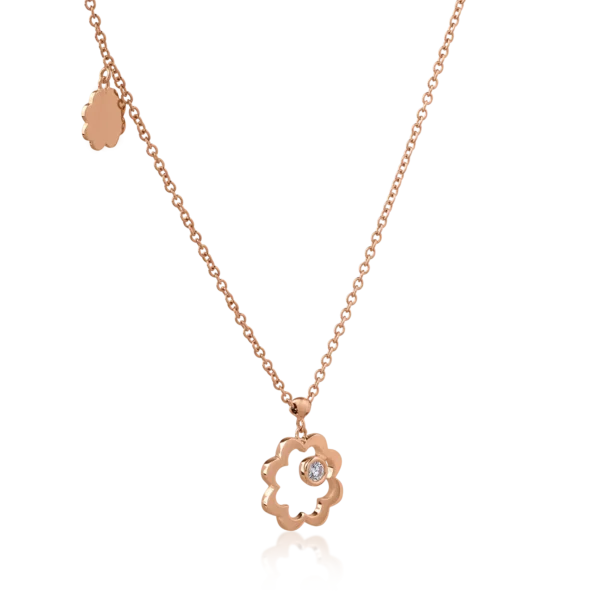 Lant cu pandantiv din aur roz cu diamant de 0.011ct