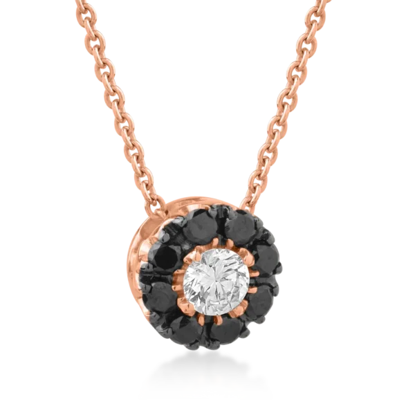 Lant cu pandantiv din aur roz cu diamant transparent de 0.17ct si diamante negre de 0.22ct