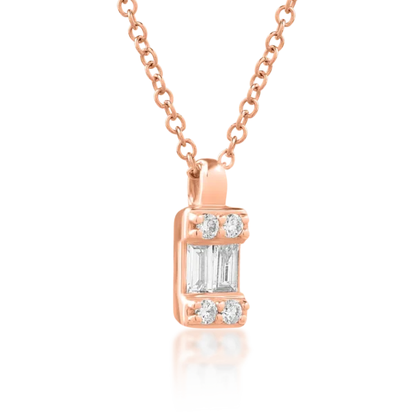 Lant cu pandantiv din aur roz cu diamante baguette si rotunde de 0.083ct