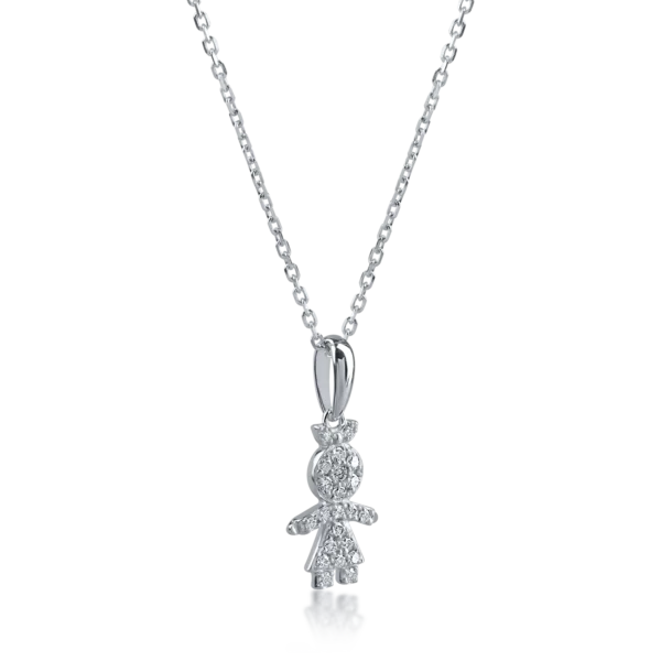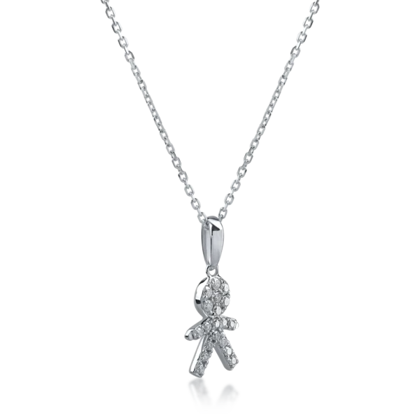 Lant cu pandantiv copil din aur alb cu diamante de 0.11ct
