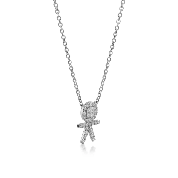 Lant cu pandantiv copil din aur alb cu diamante princess si rotunde de 0.32ct
