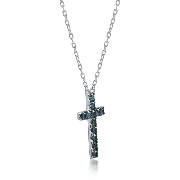 Lant cu pandantiv cruce din aur alb cu diamante albastre de 0.41ct