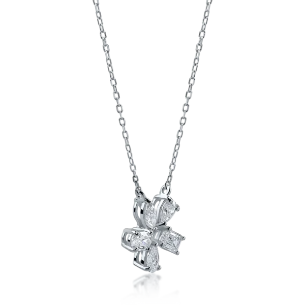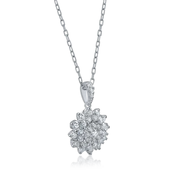 Lant cu pandantiv floare din aur alb cu diamante de 0.6ct