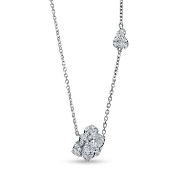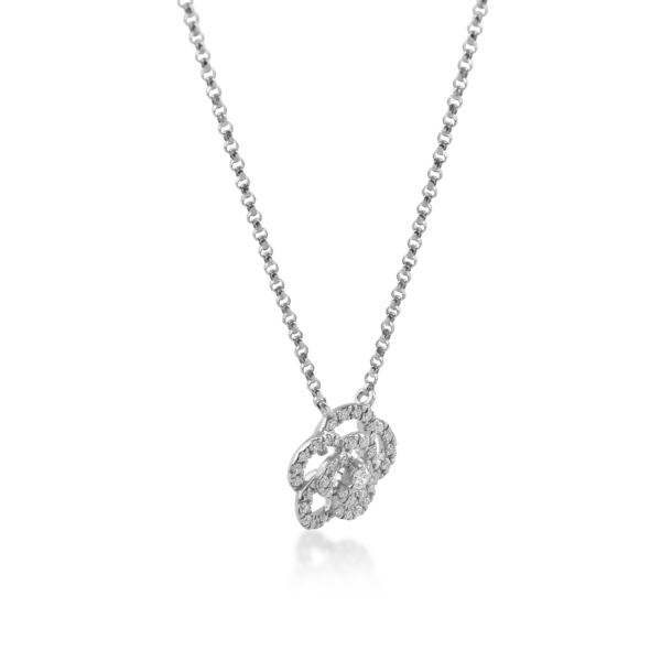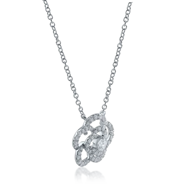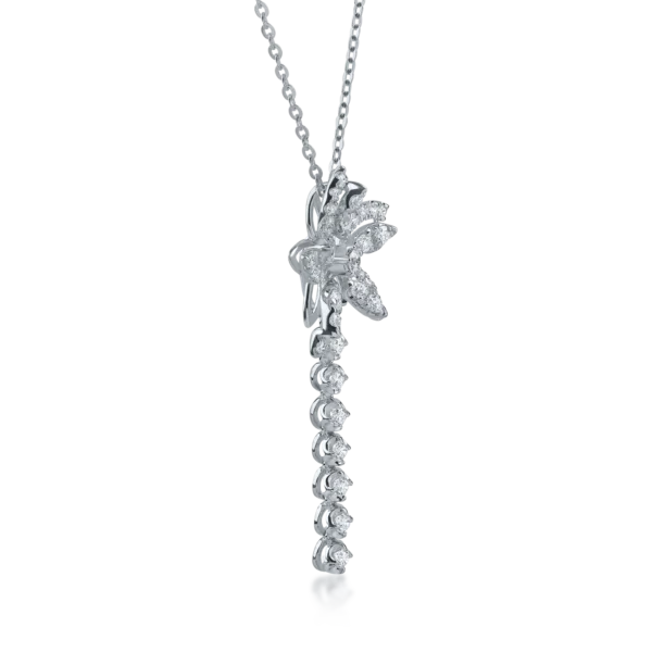 Lant cu pandantiv floare din aur alb cu diamante de 0.61ct