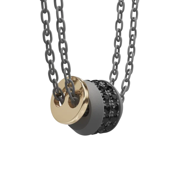 Lant cu pandantiv fetita si baiat din aur galben cu diamante baguette si rotunde de 0.27ct