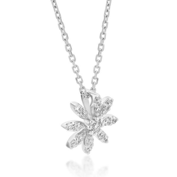 Lant cu pandantiv floare din aur alb cu diamante de 0.19ct